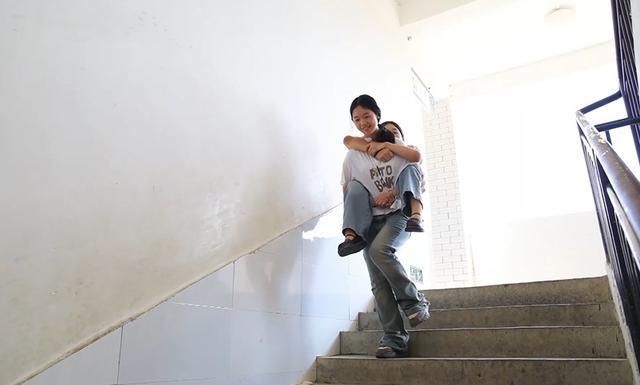 小刘介绍,现在两人上初二。每天由她奶奶骑车接她俩上下学,在学校里,则继续由匡语轩背她上下楼,她现在体重比小学重很多,匡语轩背她爬楼梯会比较吃力。为了让匡语轩轻松点,她尽量不出教室,也很少喝水,减少如厕次数。
